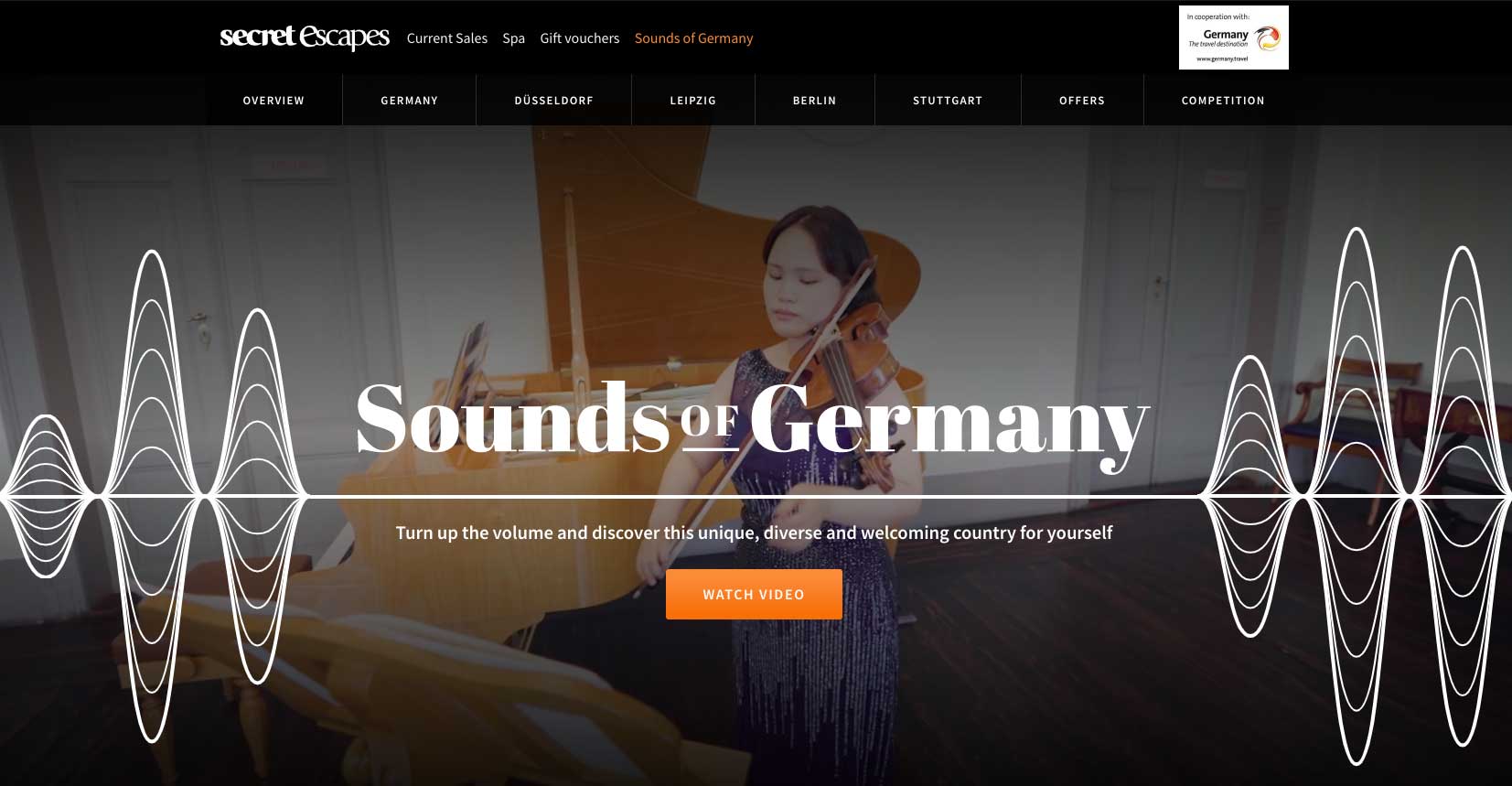 Secret Escapes was chosen as a partner for the landing page. They managed to convince the GNTB with a creative concept. The campaign aimed to enhance brand engagement by creating wdm_placeholder_number_17that resonated with the audience. In addition to the video content I provided, they added so-called video overlays. This way the user could see at any time at which POI he or she was at the moment, while the video continued to run seamlessly. So you can imagine it as graphic elements, but they were not embedded in the video, but via the homepage.