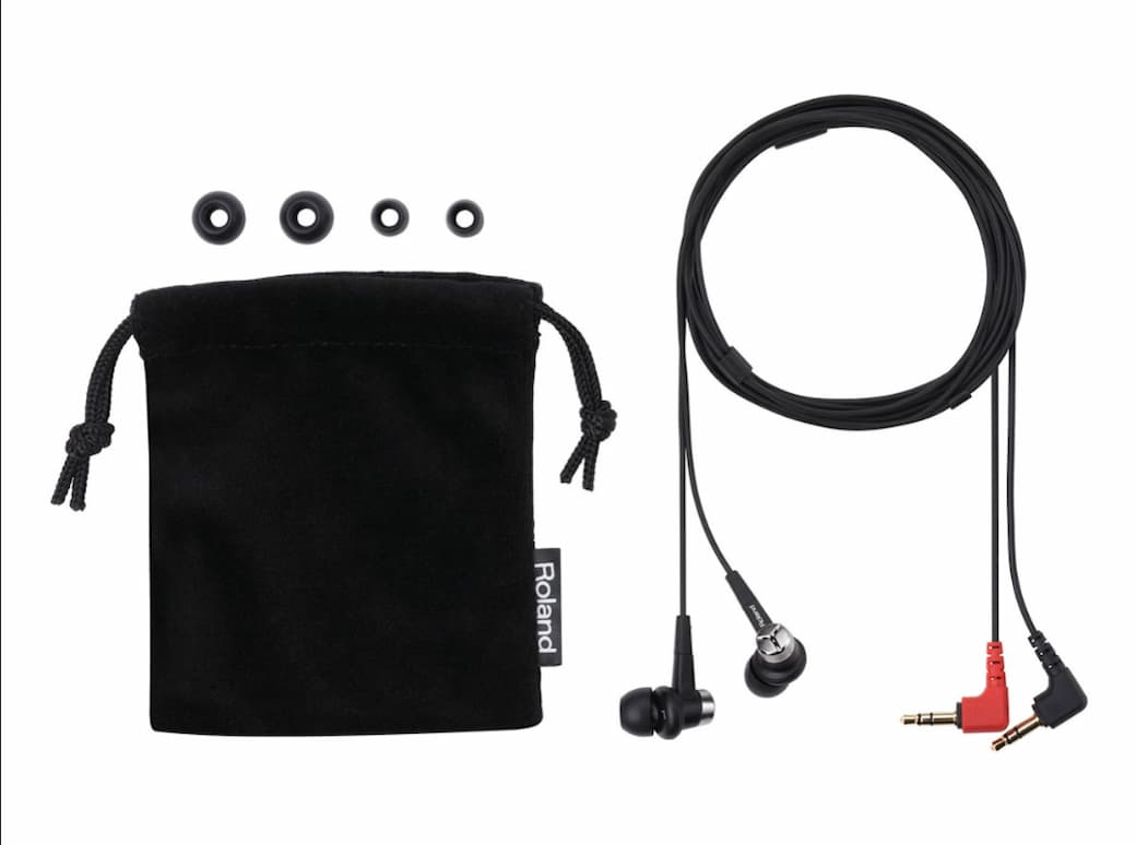 By placing the microphone capsule in close proximity to the earphones, they enable a particularly authentic reproduction of the sound from the musician’s perspective. They combine classic in-ear headphones with two omnidirectional electret condenser microphones. This makes it possible to simultaneously record and listen to recordings, which classifies the Roland CS-10EM as a headset.