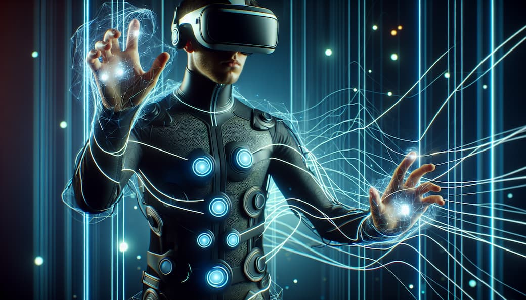 Diese fortschrittlichen Technologien werden eingesetzt, um realistische Empfindungen und Erfahrungen für die Nutzer/innen zu erzeugen. Durch haptisches Feedback ermöglichen diese Anzüge, körperliche Reaktionen wie Berührungen, Druck, Vibrationen und Temperaturveränderungen zu spüren – und verbessern so das Gesamterlebnis der virtuellen Realität (VR).